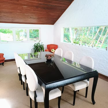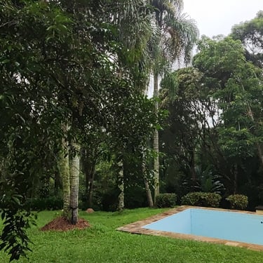 A casa está em um terreno de 2ha e com muitos espaços internos para eventos climáticos menos favoráveis